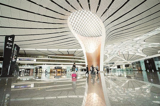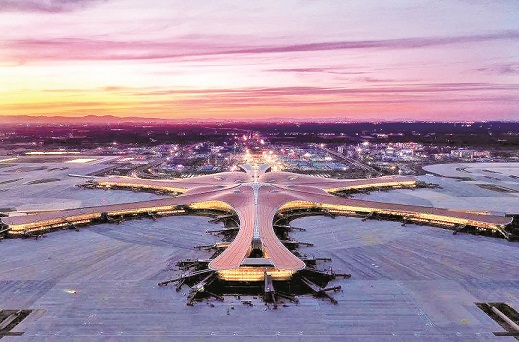 2019年9月25日,外观宛如金色凤凰的北京大兴国际机场正式投入运营。该机场自2014年12月开工建设至首航投运,耗时不到5年,被英国《卫报》列为“新世界七大奇迹”之首。机场位于北京市大兴区与河北省廊坊市广阳区交界处,距离北京天安门46公里,距离廊坊市26公里,距离雄安新区55公里,距离北京首都国际机场67公里 ;定位为大型国际航空枢纽、国家发展一个新的动力源、支撑雄安新区建设的京津冀区域综合交通枢纽。