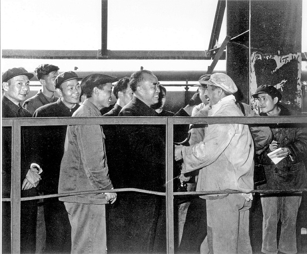 1958年9月13日,毛泽东在湖北省委书记王任重陪同下视察武钢,观看第一炉铁水出炉。一号高炉的出铁,比原定的1959年投产早了10个多月。这座容积为1513立方米的高炉,是当时亚洲最大的高炉。