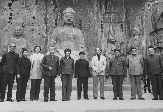 1973年10月,周恩来与特鲁多(右四)一行在河南洛阳龙门石窟合影