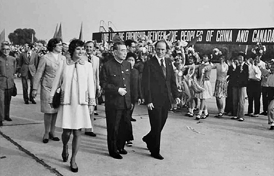 1973年10月10日,特鲁多带着精心准备的礼物——白求恩大夫发明的肋骨剪,首次以总理身份访华。他受到中方高规格接待,周恩来总理3次与他会晤,还陪他访问洛阳,并在火车上与他彻夜长谈。邓小平副总理则陪他观看了《红色娘子军》,并同他一起游览桂林。特鲁多以“不远万里”来形容自己的中国之行,称妨碍两国间相互了解的不是高山、森林和大海,而是“头脑中的冥顽不灵”。他说:“建设一个国家需要两种旅行者,一种是克服地理上距离的,另一种是克服思想上和精神上距离的,而我同时成了这两种旅行者。”