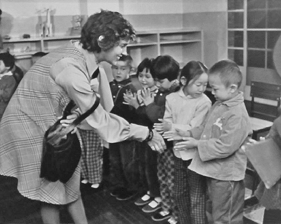 1973年10月12日,特鲁多夫人参观北京幼儿园