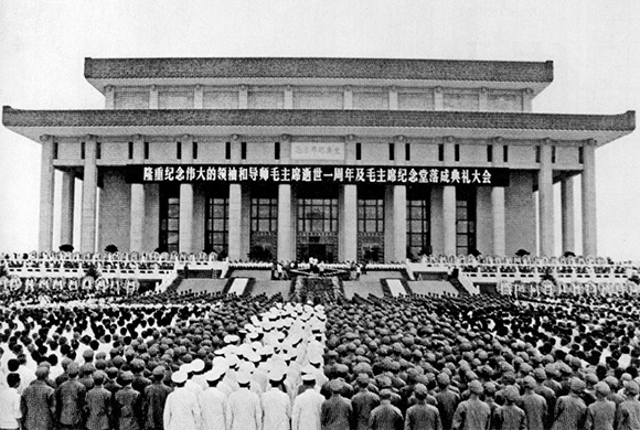 1977年9月9日,来自全国各界的代表聚集在纪念堂北门广场,参加“隆重纪念伟大的领袖和导师毛主席逝世一周年及毛主席纪念堂落成典礼大会”