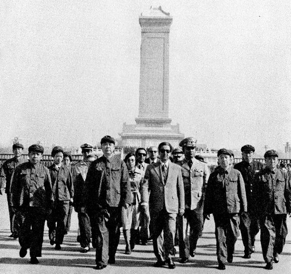 1978年5月3日,粟裕(前排右二)、李德生(前排右四)陪同突尼斯国防部部长瞻仰毛主席纪念堂