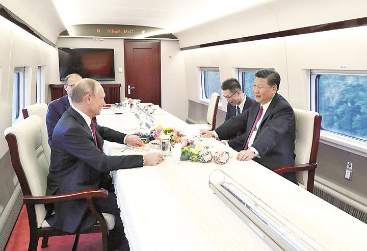 2018年6月8日下午, 国家主席习近平同俄罗斯总统普京共同乘坐高铁前往天津,出席中俄友好交流活动