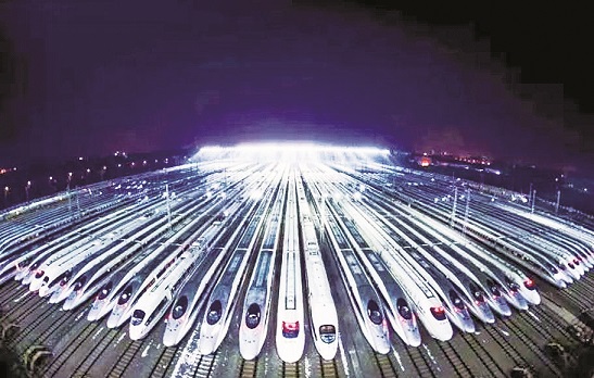 曾几何时,中国铁路面临运输能力不足,列车行驶速度慢,客货混跑矛盾增加等困境。2003年,中国高速铁路确立“市场换技术”基本思路,通过与外国企业合作建设发展中国高铁技术。2004年1月21日,国务院审议通过《中长期铁路网规划》,规划建设“四横四纵”客运专线,设计速度指标在200千米/小时以上。2005年6月11日,石太高速铁路开工建设,中国正式进入标准化建设高速客运专线铁路阶段。此后,一大批干线高速铁路和城际高速铁路项目相继启动。2009年12月26日,京广高速铁路武广段开通运营,列车最高运营速度350千米/小时,首次打破中国铁路春运瓶颈,高铁运输在干线铁路上占据重要地位。2017年12月28日,石济高速铁路开通运营,中国铁路“四横四纵”快速通道全部建成通车。目前,“八纵八横”规划也在逐步完善。中国高铁已经拿下多个世界之最:世界上高铁里程最长、运输密度最高、成网运营场景最复杂的国家。