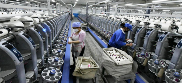 经过多年发展,我区毛纺、棉纺、化纤等纺织产业门类齐全,产业链较为完善,形成了一定的规模和优势,拥有规模以上企业88家,2020年实现销售收入150亿元。图为宁夏恒丰公司现代化的纺织车间。图为我区现代化纺织企业车间宁夏恒达宁夏恒丰纺织纺纱车间