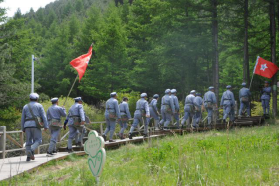 在将台堡红军会师纪念碑前,全体党员佩戴党员徽章,面向党旗庄严宣誓,向纪念碑敬献花篮,表达对革命英烈的深切缅怀和由衷敬意,并聆听了红军长征历程的“微党课”。在六盘山长征纪念馆,党员干部换上红军装,开展走一次红军小道、唱一首红歌、听一次长征史、吃一顿红军餐等“四个一”体验活动,参观了红军长征纪念馆。一张张浴血奋战的历史照片,一件件睹物思情的革命文物,把大家带入了战火纷飞的年代。通过亲身体验,党员干部被“不到长城非好汉”的革命精神深深震撼,受到了深刻的思想洗礼,也进一步增强了坚守初心、勇担使命的信仰信念信心。