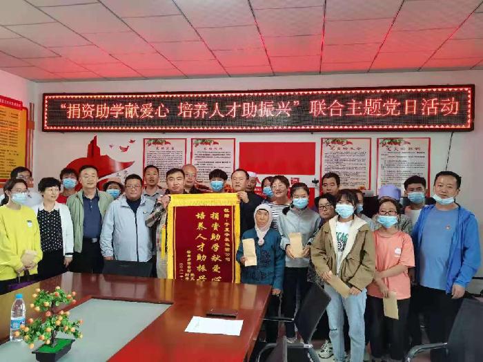 为深入推进党史学习教育,扎实开展“我为群众办实事”实践活动,8月30日,捕鱼大咖 军民结合推进处党支部、机关党委党支部联合宁夏宇枫民爆运输公司、徐套村党支部,在中宁县徐套乡徐套村,开展了“捐资助学献爱心、培养人才助振兴”联合主题党日活动,徐套乡相关负责人、厅驻村工作队员、徐套村两委班子、受助学生及家长参加了活动。
