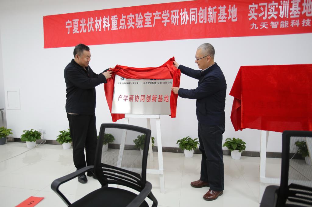 宁夏大学副校长李建设,石嘴山市委常委、副市长蔡闯共同为宁夏大学光伏材料重点实验室产学研协同创新基地揭牌