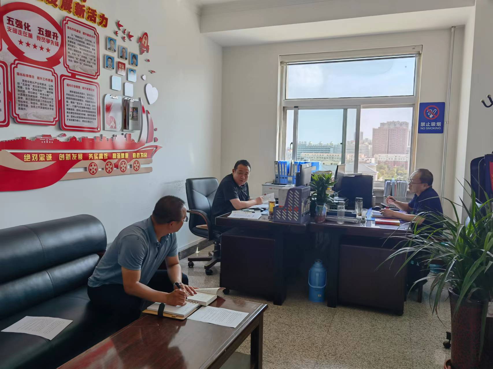 围绕落实生态优先战略、加快建设黄河流域生态保护和高质量发展先行区目标任务,党支部积极主动作为,紧盯碳达峰、碳中和时间节点,提出“支持+规范”的推进思路,研究制定出台了《宁夏回族自治区特种铁合金企业认定管理办法(试行)》《宁夏回族自治区铁合金行业产能置换实施办法(试行)》,引导铁合金行业顺应落实能耗“双控”,实现“双碳”目标的发展大势,推进行业结构调整和转型升级,促进铁合金企业走循环化、绿色化、智能化发展路子。解决水泥行业不良竞争问题,在错峰生产、调节区域产品库存、废渣高效利用等方面,严格落实措施办法,帮助企业稳住“基本盘”,保持市场价格稳定。大力支持宁创重启11万吨电解铝产能,助力企业做大做优做强。