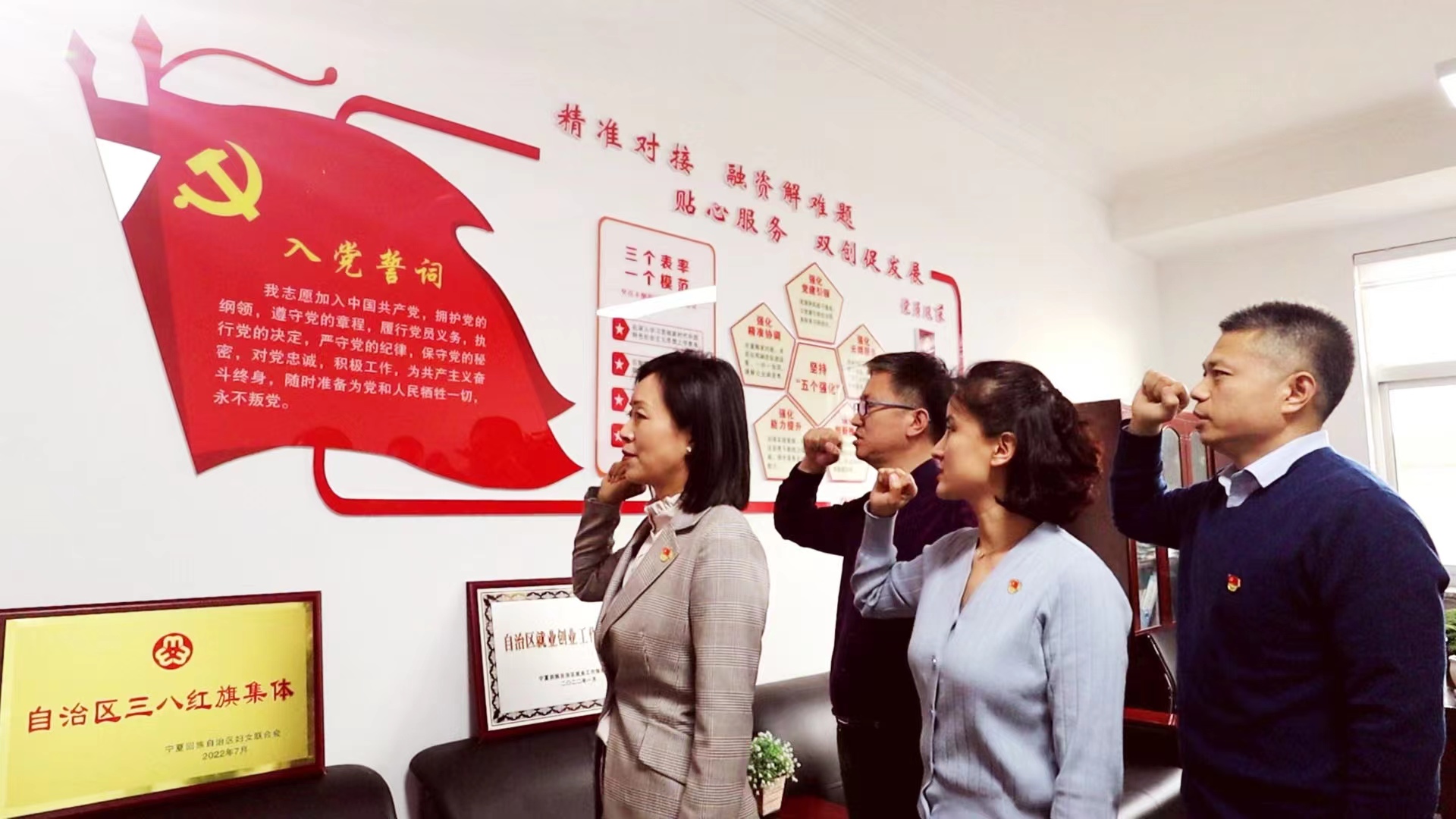 在笃行中提升服务企业的质量效益。党支部坚持问题导向,促进学用转化,将党的二十大报告中提出的“支持中小微企业发展”、“支持专精特新发展”的精神细化到具体工作实践中,不断提高服务效益。突出政策直达惠企,针对企业政策信息获取不及时、不全面问题,依托168平台政策信息平台,及时整理发布国家、自治区各类涉企政策信息1200余条;用好政策“直通车”,变“企业找政策”为“政策找企业”,实现政策精准推送、一键直达,向9000余家企业推送政策信息4万余条。突出系列服务惠企,开展以“宣传政策、落实政策,纾解难题、促进发展”为主题的“一起益企”中小企业服务月活动,指导督促平台网络、示范基地、示范平台加大服务力度,送政策、送管理、送技术,惠及中小企业4605家次;发布全区“专精特新中小企业服务需求清单”,帮助企业精准匹配“点对点”服务,服务“专精特新”中小企业1125家次。突出融资支持惠企,聚焦缓解企业融资难,精准调度1亿元政策性转贷资金,累计帮助383户企业转贷48.71亿元,为企业节约3032万元;发放融资租赁补贴4603.42万元,引导企业拓宽融资渠道,撬动融资额70亿元;会同人民银行建立协调督办机制,针对50个重点产业项目的122亿元融资需求,开展专项融资服务,逐一帮助解决协调;争取中央融资担保降费奖补资金6697万元,促进小微企业单户1000万元以下年化担保费率降至0.75%。