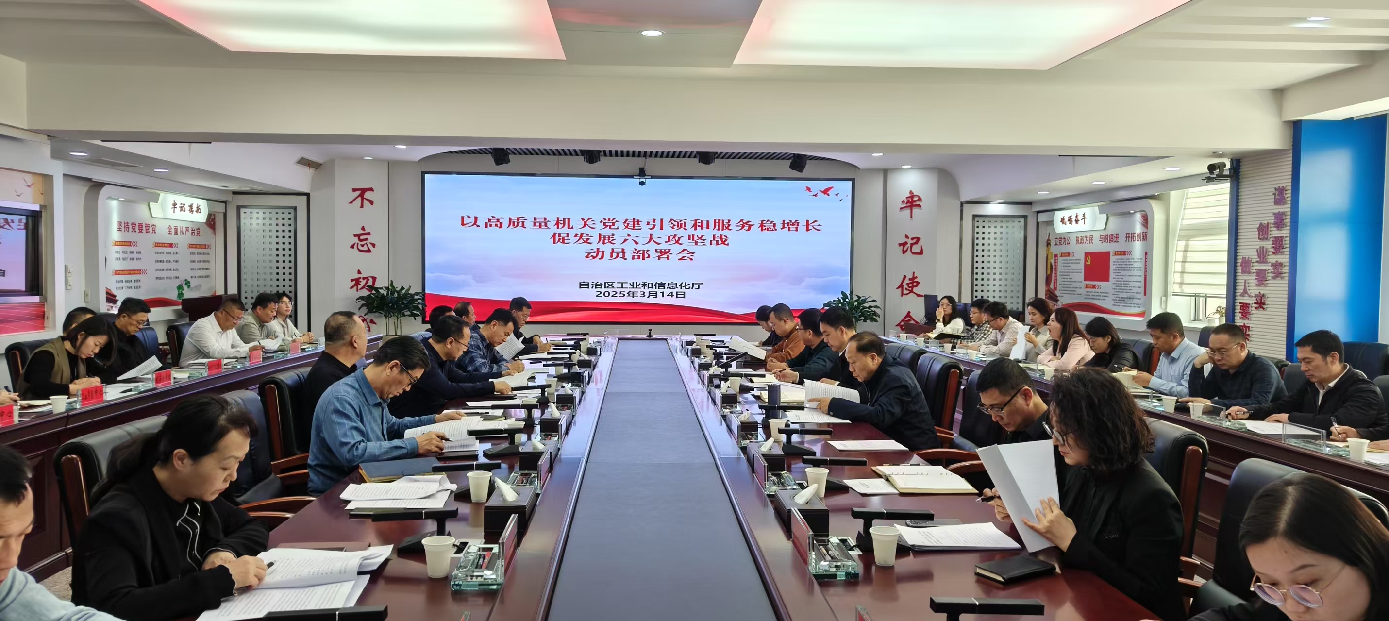 为深入贯彻落实自治区党委、政府关于“稳增长促发展攻坚年”行动各项安排部署,3月14日,工业和信息化厅组织召开以高质量机关党建引领和服务稳增长促发展六大攻坚战动员部署会,激励全厅各级党组织和党员干部进一步加压奋进,聚精会神抓改革、促攻坚、保增长,以高质量党建促进工业经济高质量发展。