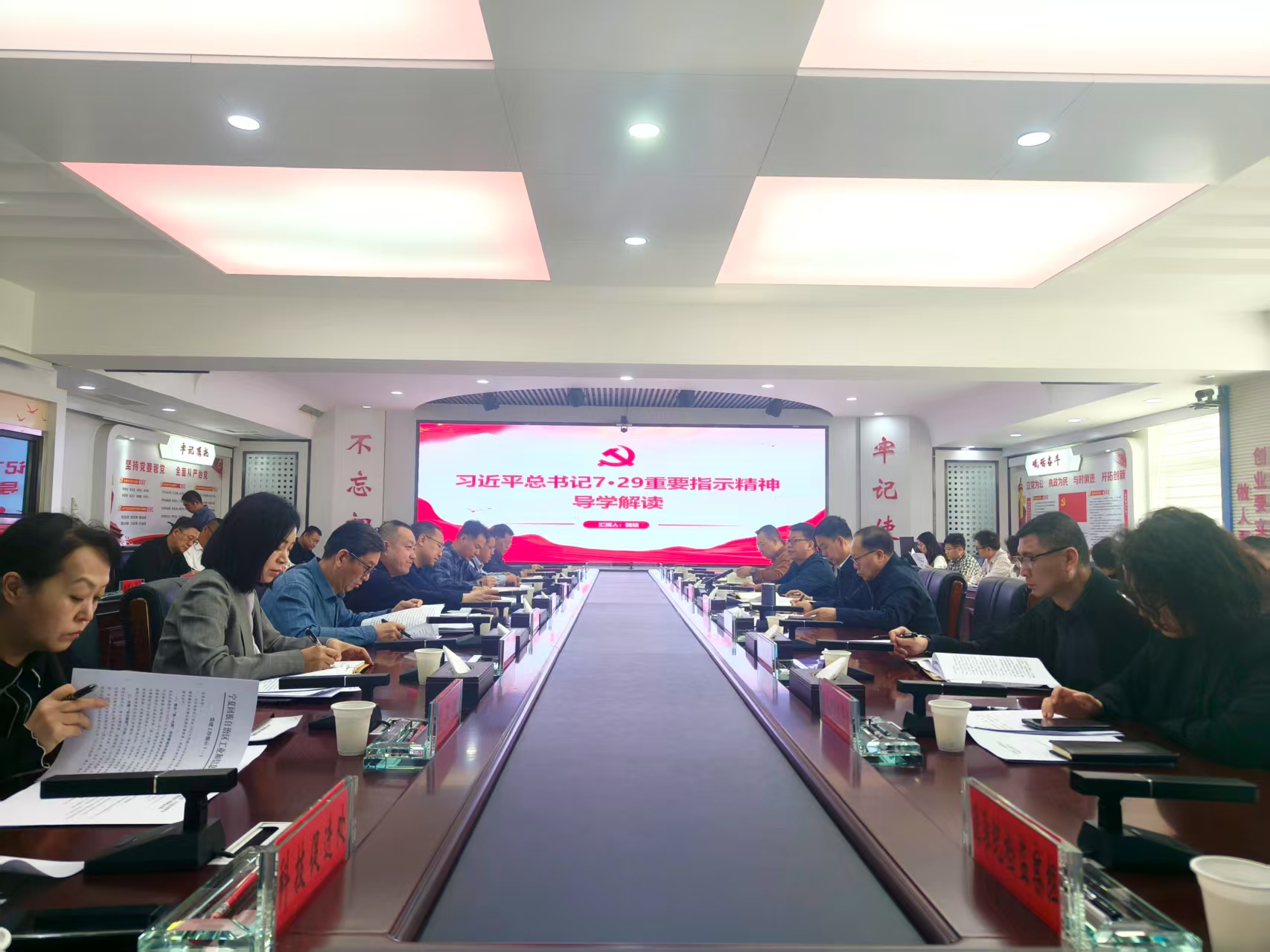 会上,机关党委围绕习近平总书记“7·29”重要批示、“7·9”重要讲话精神进行了导学解读,引导各级党组织和党员干部落实“四个带头”要求,锚定以高质量机关党建促进高质量发展这一目标,坚持围绕中心、建设队伍、服务群众,以创新思维推动机关党建提质增效。