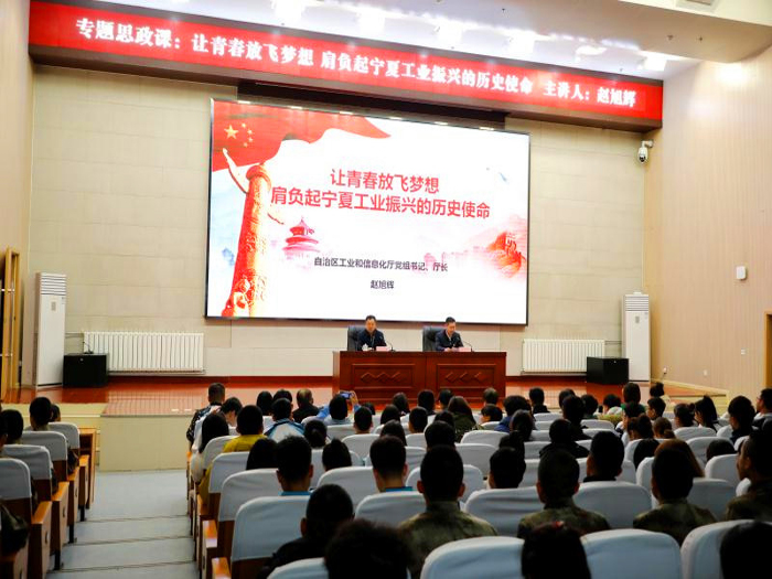 赵旭辉同志围绕“从历史看今朝,坚定信心“”从工业看宁夏,认识家乡““从青春看人生,奋力拼搏”三个方面,与师生谈工业经济、聊人生理想。他指出,作为家乡的学子,应当为工业发展取得的成就而自豪,应当对宁夏经济社会的建设发展坚定信心。同时,也要认清在发展的道路上仍有许多的坡要爬,许多的坎要过。诸多的问题要靠我们一代又一代的工业人通过辛勤的汗水、卓越的智慧去努力解决,特别是需要各级各类专业技术人才在火热一线去脚踏实地的不懈奋斗,今日莘莘学子,终将走上与之相关的工作岗位,担当新的历史使命。