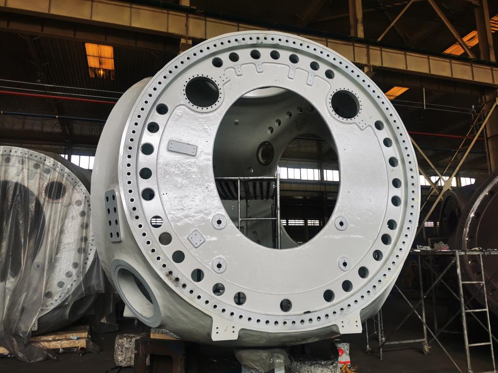 通过项目实施及成果应用转化,共享装备股份有限公司形成了一条专用于风力发电的产品生产线,项目成果已成功应用在3.2MW-155、M1030、WB3.6-168N风力发电设备部件(轮毂、前机架),各项主要技术及性能指标达到用户技术协议要求。
