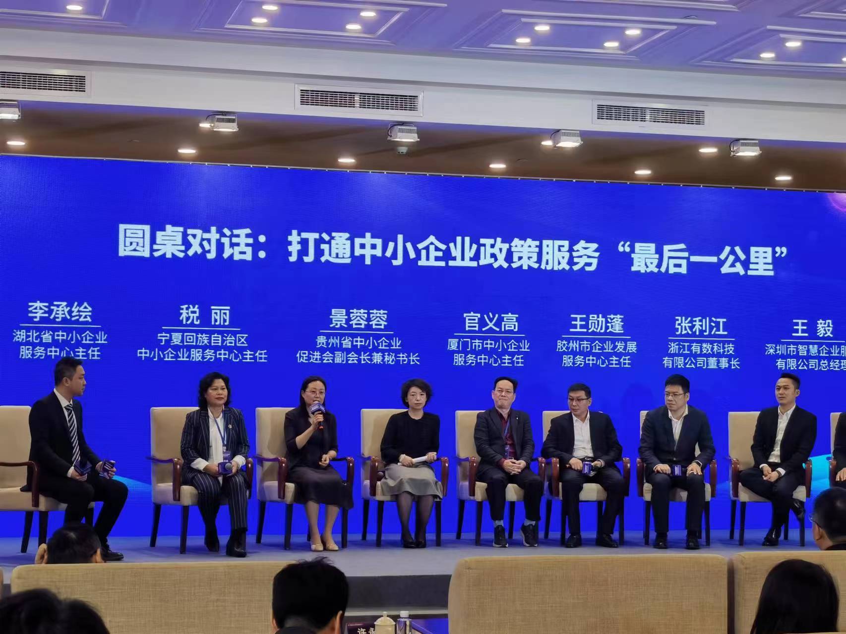 圆桌会议上宁夏回族自治区中小企业服务中心主任税丽应邀请与其他几位省中心代表围绕“打通中小企业政策服务最后一公里”主题向与会人员分享了各地开展中小企业政策服务的经验做法。
