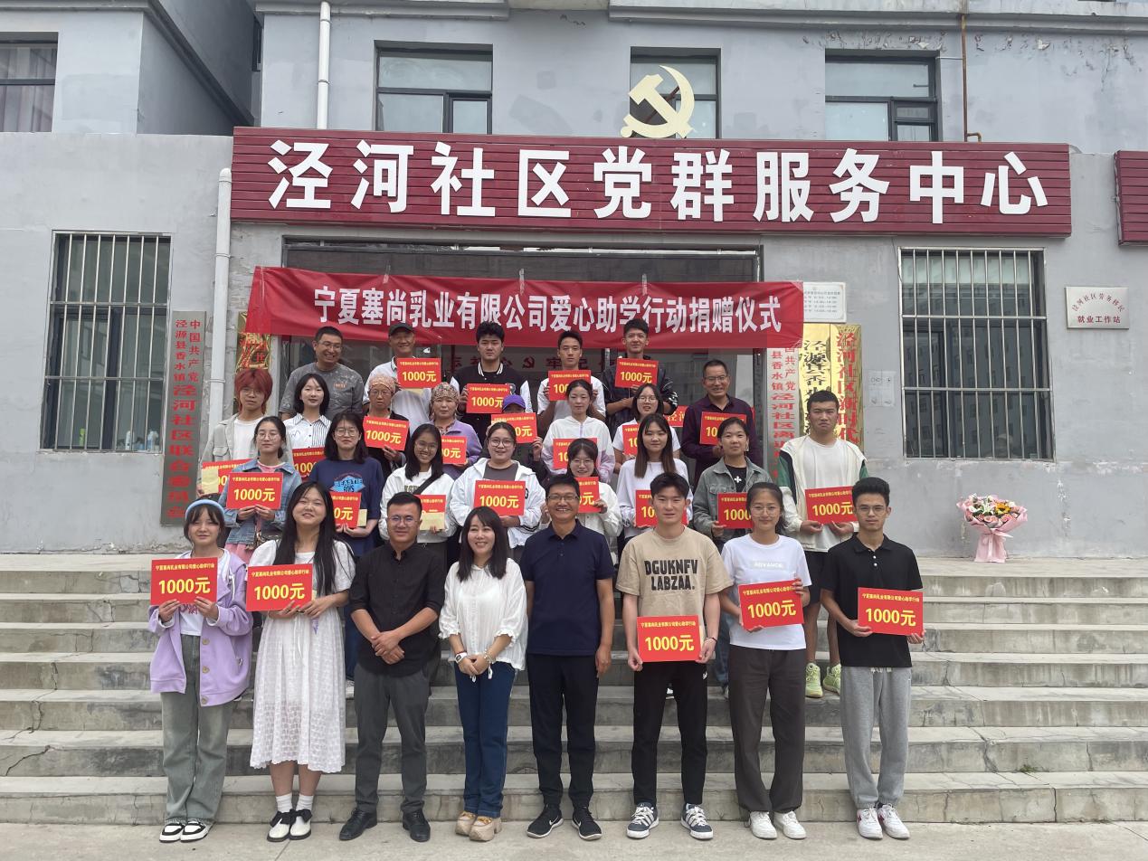 近日,在捕鱼大咖 驻泾河社区工作队的筹划组织和牵线搭桥下,宁夏塞尚乳业有限公司相关负责人来到社区,向通过自身努力、踏上人生重要节点的莘莘学子献上一份筑梦未来、点燃希望的诚挚祝福,共安排资金25000元,对社区内25名今年考上大学、家境较为贫困的新生每人捐助1000元。泾源县香水镇主要领导、泾河社区主要领导、捕鱼大咖 驻泾河区工作队及受捐对象共同参加了捐赠活动。