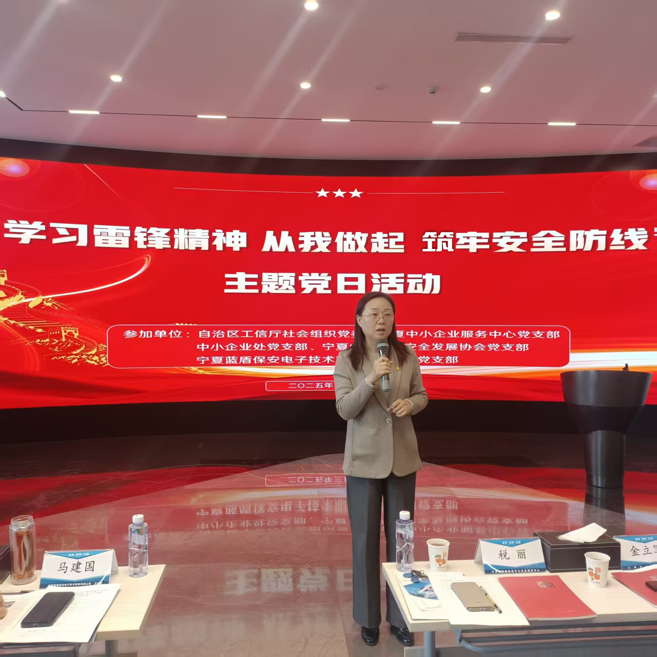 活动中,宁夏蓝盾安防科技有限公司负责人详细介绍了企业的智能化安防系统和产品应用场景、智能监控系统、入侵检测技术和紧急响应机制等安防技能的实际应用,全方位展示了科技在现代安防中的重要作用。随后,宁夏中小企业安全发展协会的专家围绕常见用电安全隐患的识别与预防,以及紧急情况下的应急措施进行了培训讲解。通过实际案例分析和互动演练,帮助大家了解实际操作方法,提升安全意识和应急处理能力。随后宁夏蓝盾保安电子技术服务有限公司党支部书记围绕“中国共产党为什么能”为主题讲党课。