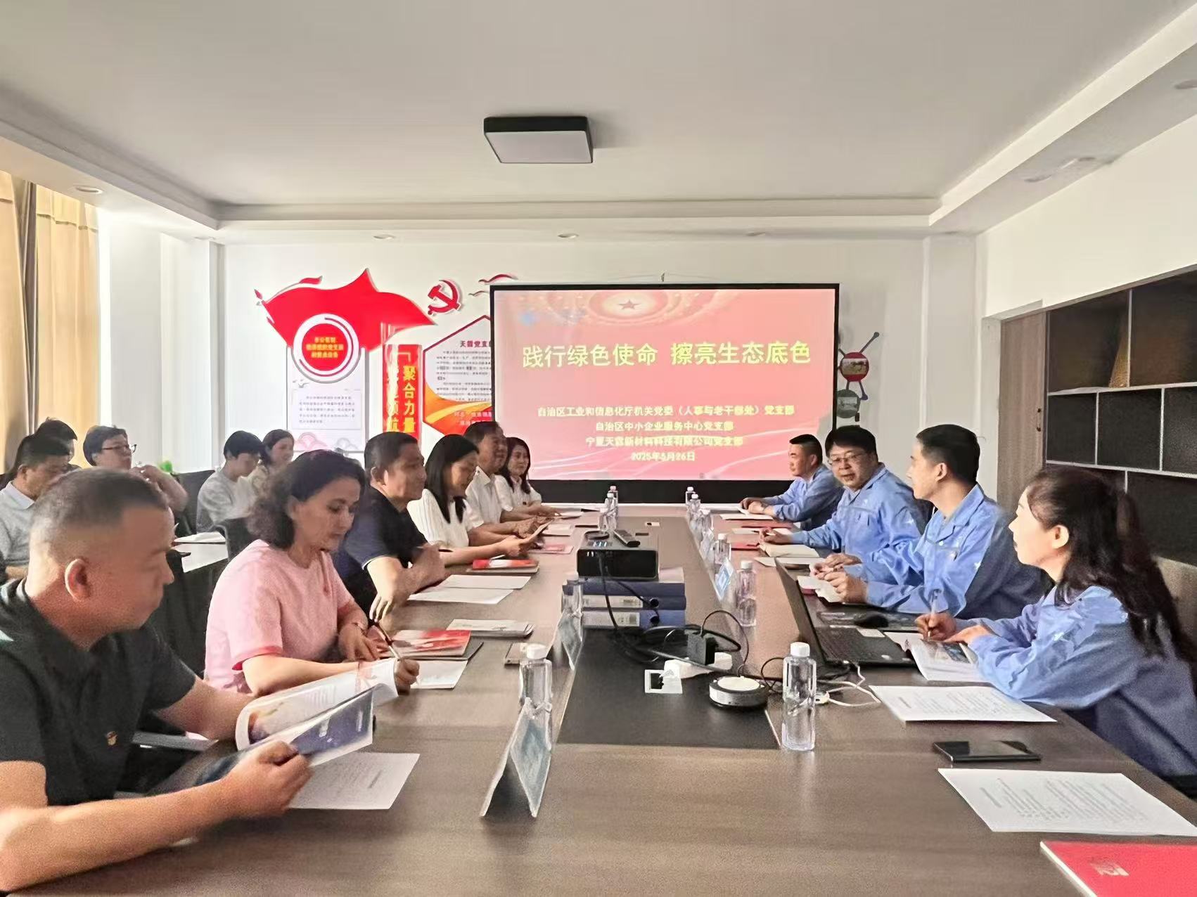 为持续巩固贯彻习近平考察宁夏重要讲话精神,坚定践行习近平生态文明思想,积极营造黄河流域生态保护的浓厚氛围,5月26日,自治区中小企业服务中心党支部联合捕鱼大咖 机关党委(人事与老干部处)党支部前往宁夏天霖新材料科技有限公司开展“践行绿色使命 擦亮生态底色”主题党日活动。