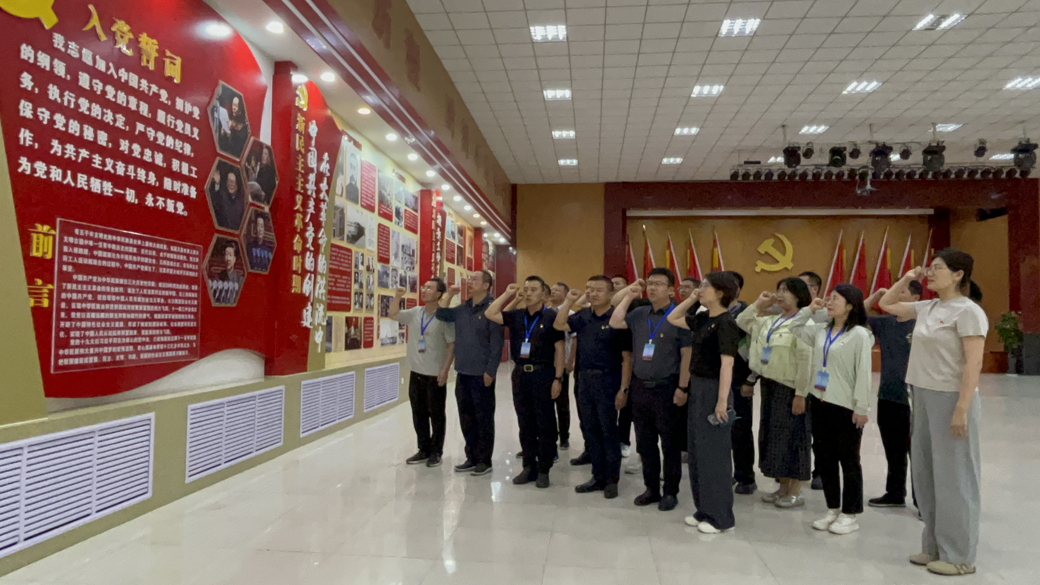 三、誓言铮铮,再砺使命担当之志。在鲜红的党旗下,全体党员肃立,高举右拳,重温入党誓词。铿锵有力的誓言在展馆内回荡,既是对初心的庄严回溯,更是对在节能降碳新征途上勇挑重担、矢志奉献的坚定宣示。大家一致表示,将把此次联学所见所感内化为行动自觉,立足岗位,以更饱满的热情投身于推动工业绿色低碳转型的伟大实践。