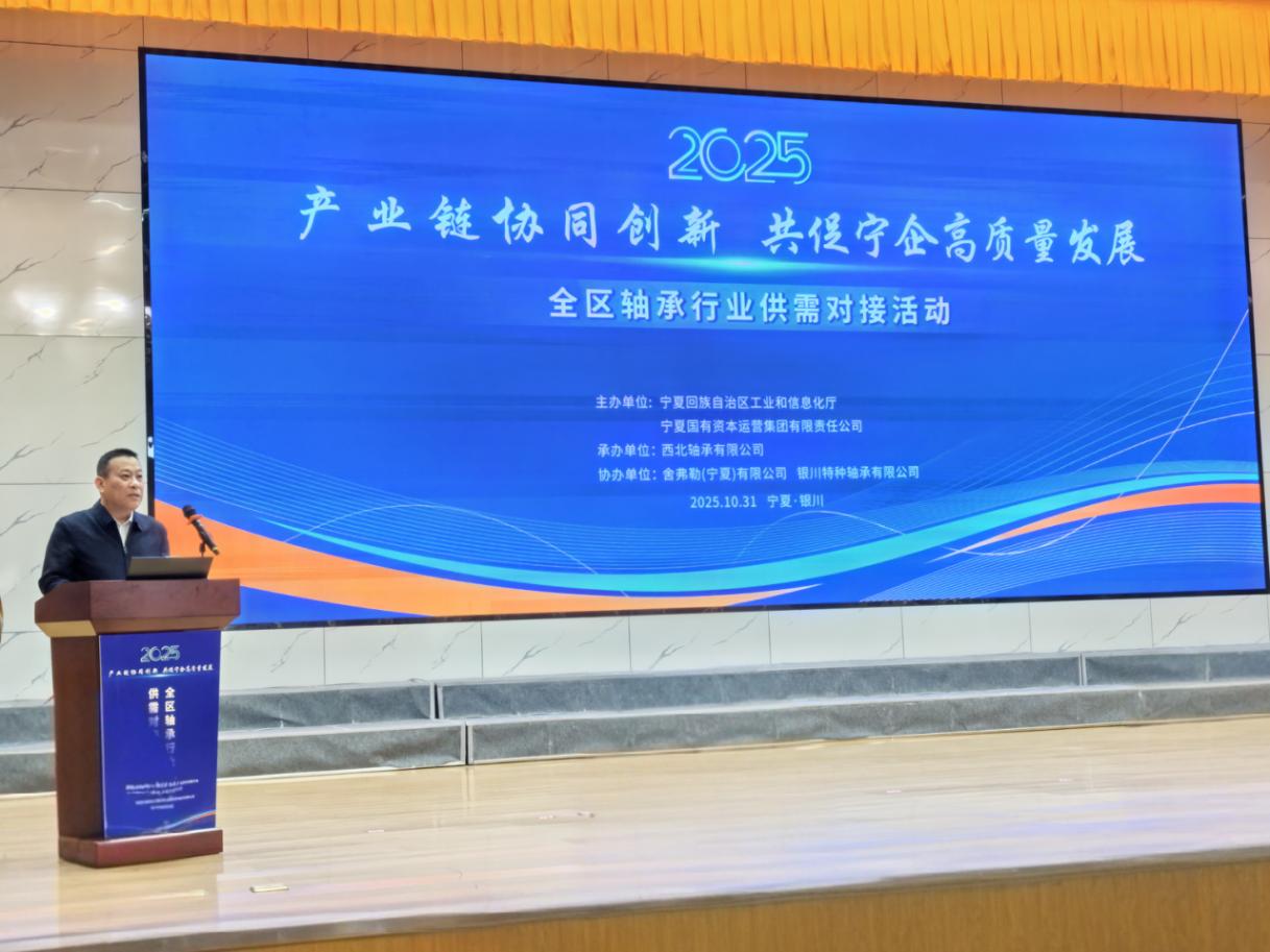 10月31日,全区轴承行业供需对接活动在银川召开,吸引了中石油长庆油田、国能宁夏电力、中曼石油装备等50多家区内外知名企业参加。会上西北轴承、舍弗勒、银川特种轴承等10家单位建立“高端轴承创新联合体”,西安凯恩传动、宁夏电投、江苏中信新能源等企业与西北轴承共签订7500万元采购协议,有效推动轴承产业链精准匹配,共同开启宁夏轴承新辉煌。捕鱼大咖 卢机智副厅长出席并致辞。