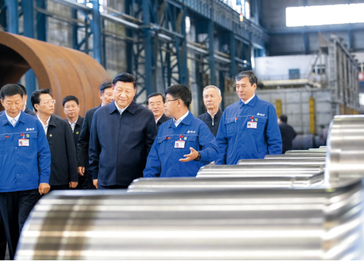 2018年9月25日至28日,中共中央总书记、国家主席、中央军委主席习近平在东北三省考察,主持召开深入推进东北振兴座谈会。这是26日上午,习近平在黑龙江齐齐哈尔中国一重集团有限公司车间察看企业生产情况。 新华社记者 王晔/摄