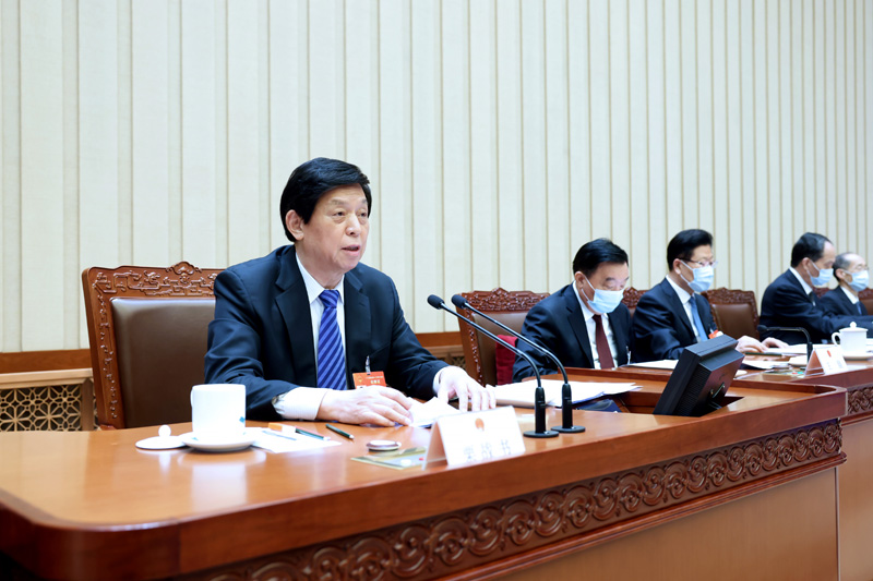 3月10日,十三届全国人大四次会议主席团在北京人民大会堂举行第三次会议。主席团常务主席栗战书主持会议。新华社记者 刘彬 摄