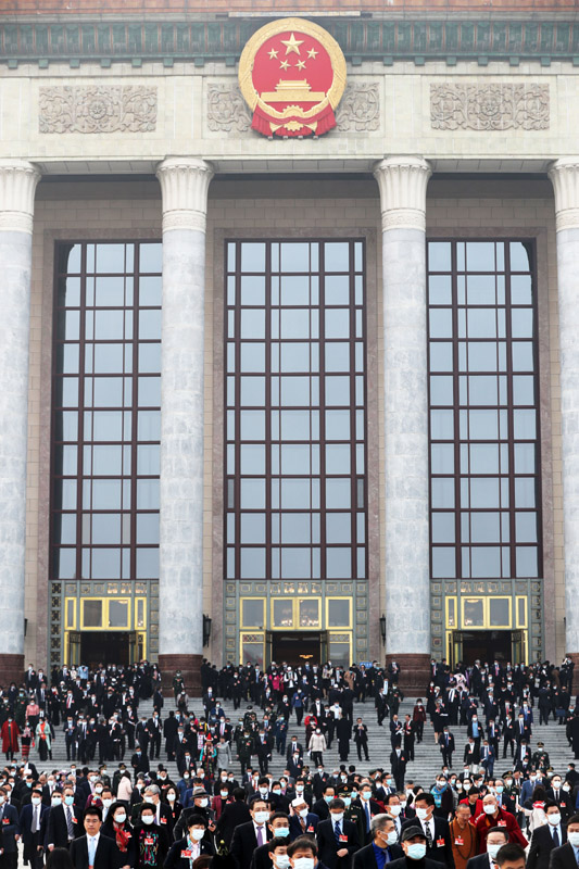 3月10日,中国人民政治协商会议第十三届全国委员会第四次会议在北京人民大会堂闭幕。这是闭幕会后,委员们走出人民大会堂。