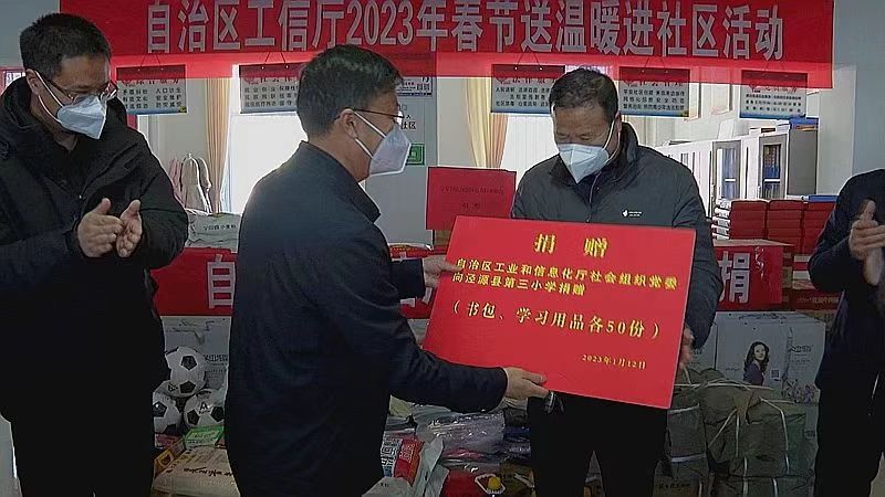 在泾河社区,刘红宁一行代表厅社会组织党委向社区捐赠了米面油、学习用品和防疫物资等慰问品;出席了宁夏电力行业协会与泾源县高级中学捐资助学协议签约仪式,并向现场群众代表转达了厅党组亲切问候和美好祝愿。