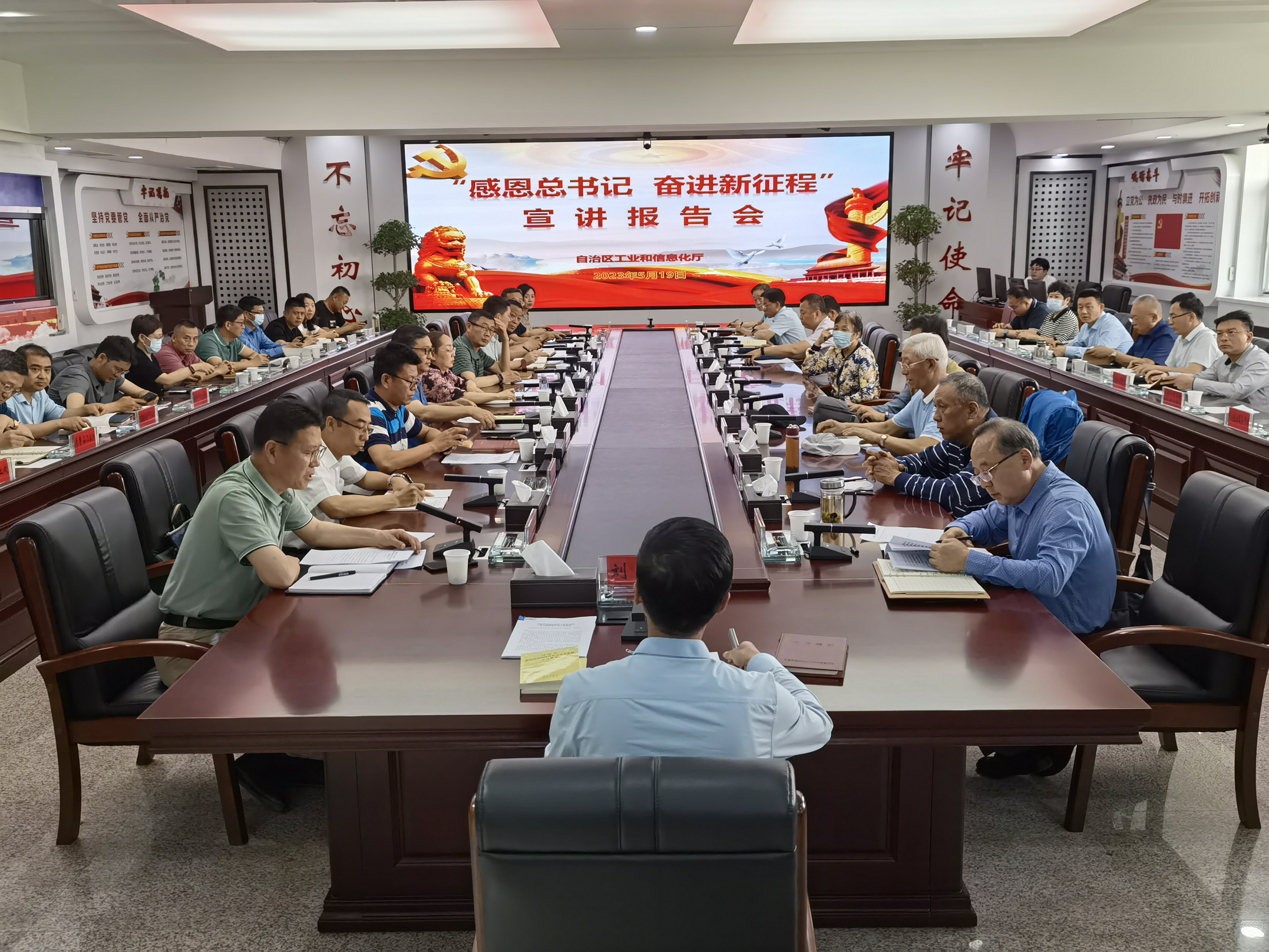 按照自治区党委“感恩总书记,奋进新征程”习近平新时代中国特色社会主义思想宣讲的部署要求,5月19日,捕鱼大咖 党组成员、副厅长刘红宁以《加快推进我区新型工业化进程 着力构建现代化产业体系》为题,进行了专题党课宣讲,全厅150多名党员干部通过“线上+线下”的方式聆听了宣讲报告会,自治区党委主题教育第三巡回指导组成员参加了宣讲活动。