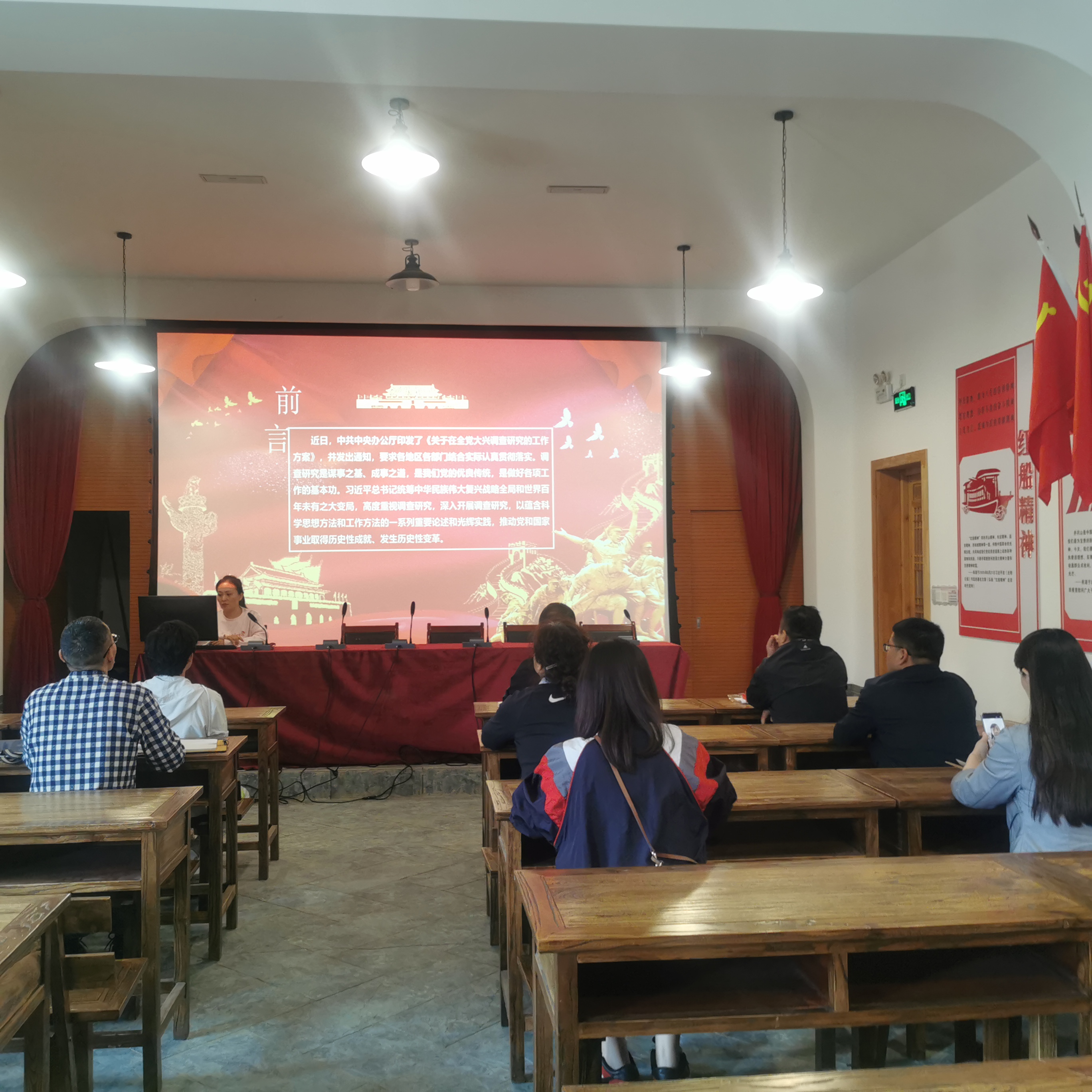 中心党员干部集体参观了“初心馆”,整个展馆包括序厅、长河浩荡、浴血荣光、流金交响、首善华章、尾厅五个单元的主线路。在历史长廊中,党员们认真聆听、回忆经历,以时间顺序为主轴线,共同回望中国共产党把初心融入为人民谋幸福之路的薪火相传、弦歌不辍。通过参观展馆陈列,体会肩上的责任与担当。活动中,党员干部佩戴党徽、举起右拳,通过重温入党誓词,感受红色信仰的神圣和庄严。随后,中心利用初心教室集中学习了《习近平新时代中国特色社会主义思想专题摘编》《党章》,支部书记围绕“深入学习领会关于调查研究的重要论述精神 —练好调查研究基本功”为题,进行了党课教育。
