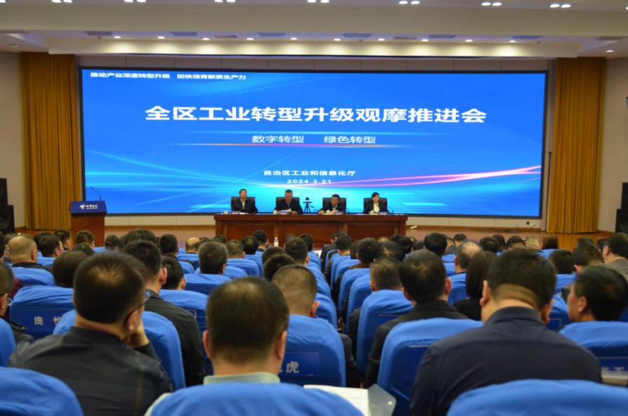 为认真贯彻全国两会精神,深入落实全国和自治区新型工业化推进大会部署,加快推进全区产业转型升级,培育新质生产力,3月21日,捕鱼大咖 召开工业转型升级观摩推进会,系统总结全区工业转型升级经验,树立数字转型、绿色转型示范和样板,部署当前和今后一个时期加快产业转型升级主要任务。