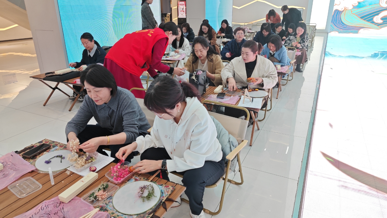 文化润心:邂逅非遗之美 传承匠心精神。由专业非遗老师讲解指导,以干花团扇、发簪等非遗手作体验为主题,感悟非物质文化遗产魅力的同时,为女职工在紧张工作之余营造陶冶情操、放松身心的节日氛围,感受丰富的文化生活,缓解工作压力,促进女职工身心健康真正实现了“悦心”与“赋能”的双重收获。