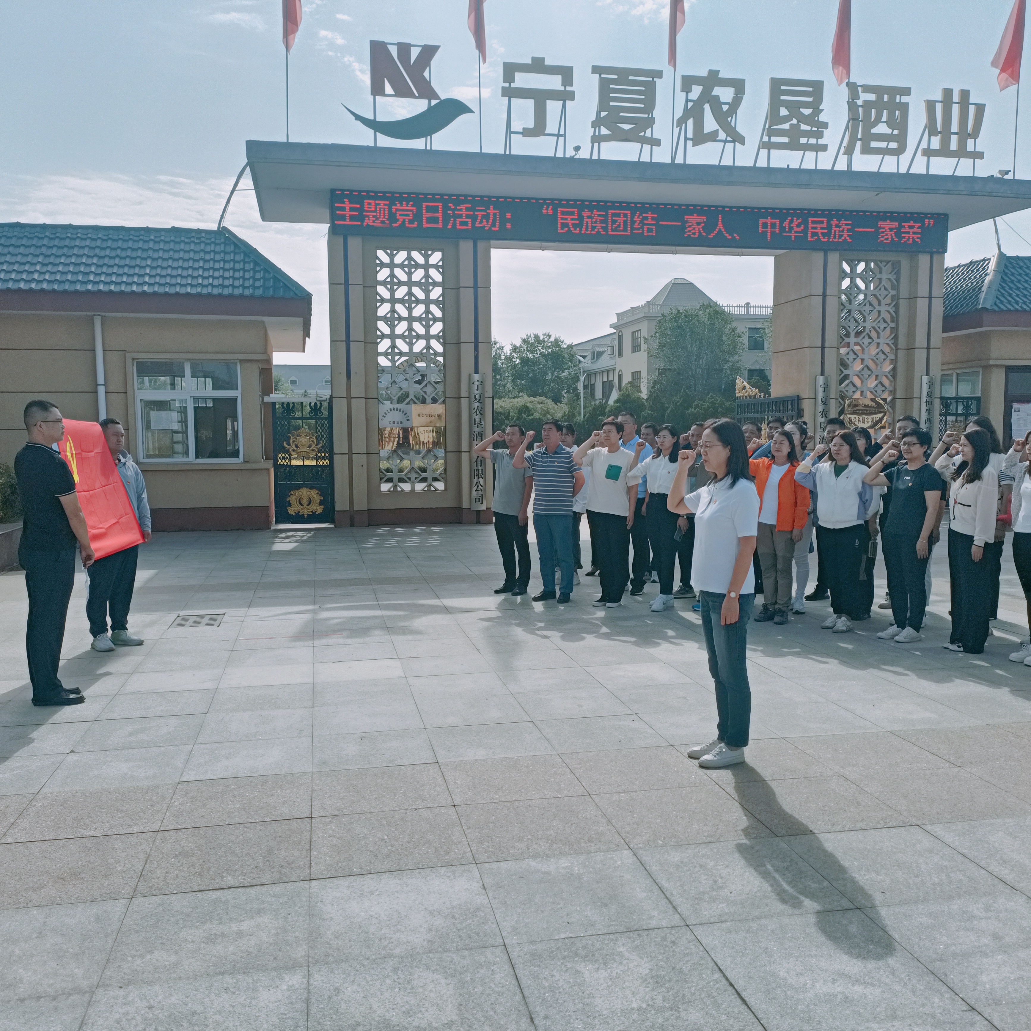 2023年9月是全区第40个民族团结进步月,为全面贯彻落实中央民族工作会议和自治区第十三次党代会精神,扎实开展好民族团结进步月的活动,近日,捕鱼大咖 社会组织党委组织各实体党支部联合宁夏中小企业服务中心党支部、宁夏农垦酒业有限公司共40余名党员前往永宁县闽宁镇和宁夏农垦酒业有限公司开展“民族团结一家人、中华民族一家亲、铸牢中华民族共同体意识”主题党日活动。