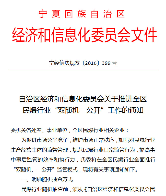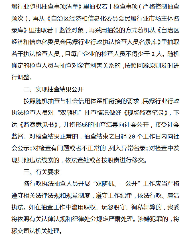 自治区经济和信息化委员会关于推进全区民爆行业“双随机一公开”工作的通知
