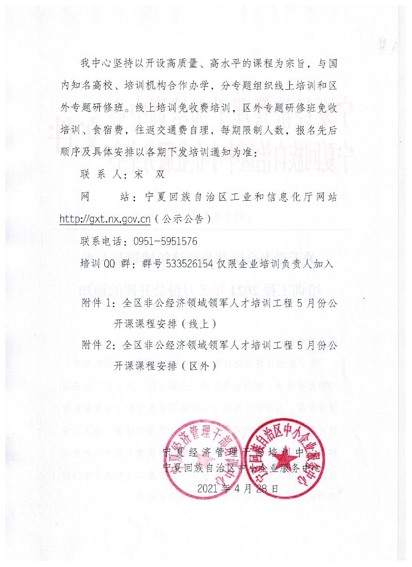 关于举办全区非公经济领域领军人才培训工程2021年5月份公开课的通知