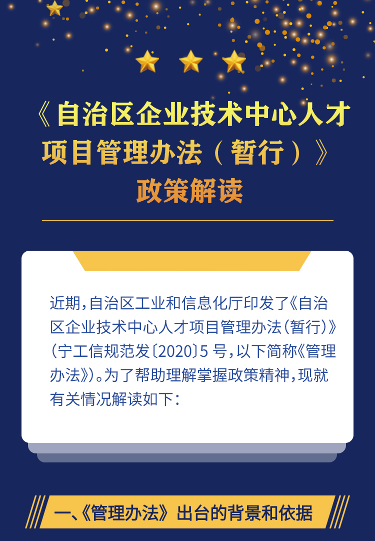 《自治区企业技术中心人才项目管理办法(暂行)》政策图解 发布日期:2020-08-12 11:26:41 政策文件:捕鱼大咖 关于印发《宁夏回族自治区企业技术中心人才项目管理办法(暂行)》的通知 上一条:《关于促进民营经济健康发展的若干意见》政策图解 下一条:《宁夏回族自治区服务型制造示范(企业、项目、平台)认定管理暂行办法》政策解读 扫一扫在手机打开当前页 打印关闭