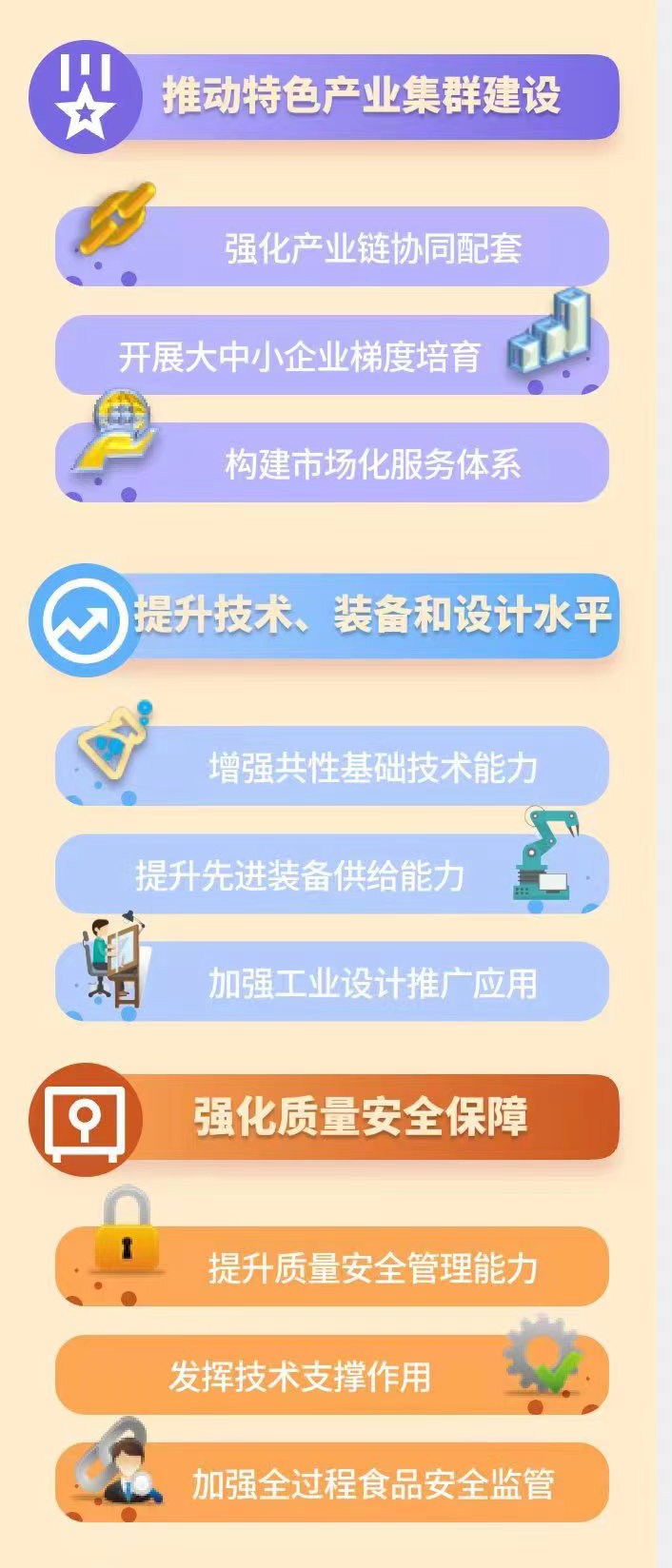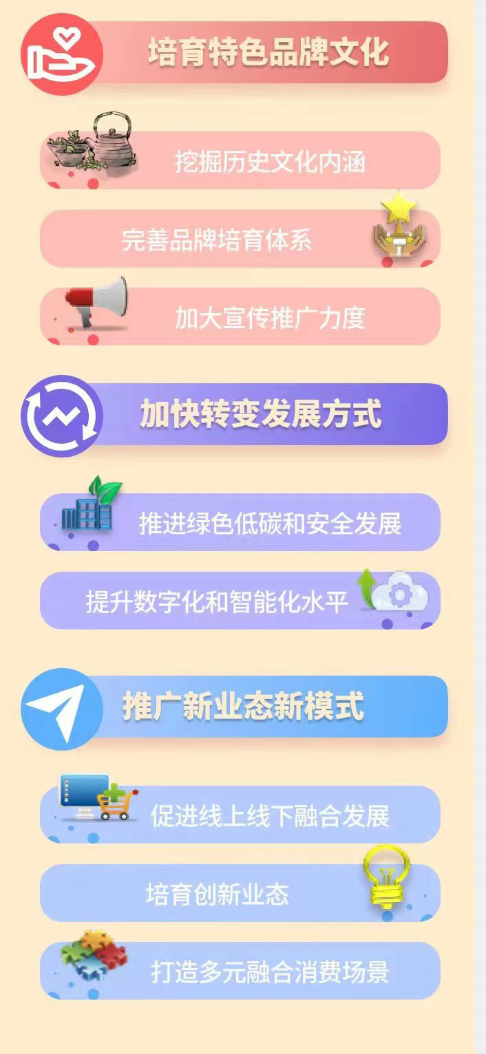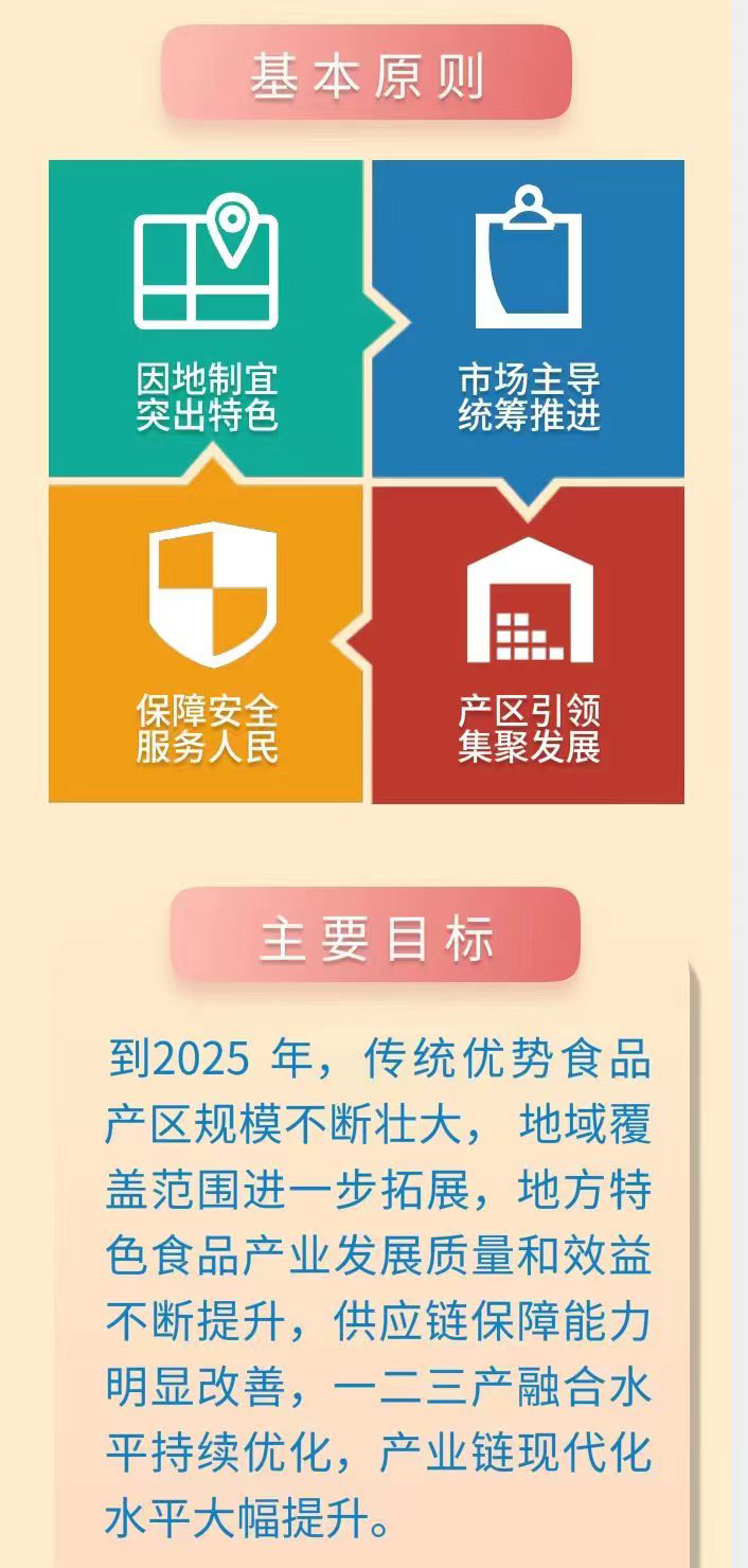 一图读懂《工业和信息化部等十一部门关于培育传统优势食品产区和地方特色食品产业的指导意见》 发布日期:2023-03-29 14:17:28 工业和信息化部等十一部门关于培育传统优势食品产区和地方特色食品产业的指导意见《工业和信息化部等十一部门关于培育传统优势食品产区和地方特色食品产业的指导意见》解读 上一条:一图读懂《宁夏回族自治区卓越工程师实践基地和协同创新中心建设管理办法》 下一条:《中华人民共和国中小企业促进法》政策图解 扫一扫在手机打开当前页 打印关闭
