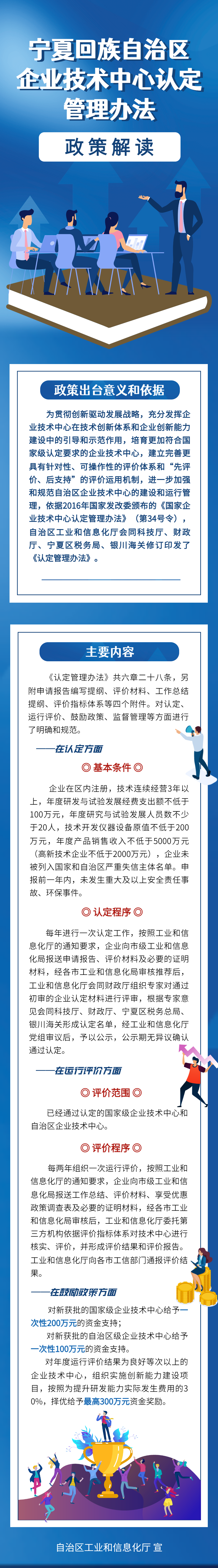 一图图解《宁夏回族自治区企业技术中心认定管理办法》 发布日期:2023-05-31 11:00:00 宁夏回族自治区企业技术中心认定管理办法《宁夏回族自治区企业技术中心认定 管理办法》政策解读 上一条:一图读懂《电子信息制造业数字化转型实施方案》 下一条:一图图解《宁夏回族自治区重点产业链“链主”企业认定培育管理办法》 扫一扫在手机打开当前页 打印关闭