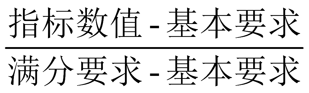 5.指标数值处于基本要求和满分要求之间时,指标得分按线性插值的方法计算,具体计算公式为: