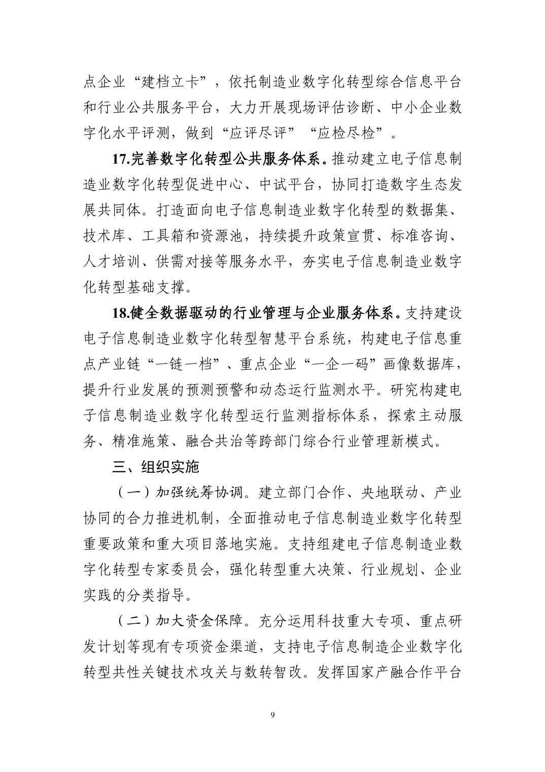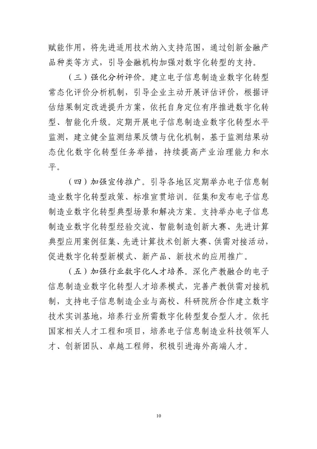 三部门关于印发《电子信息制造业数字化转型实施方案》的通知